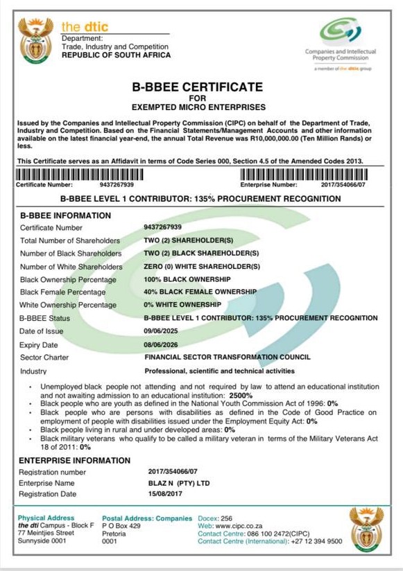 We are proud to be a Level 1 BBBEE Contributor, demonstrating our commitment to transformation,
